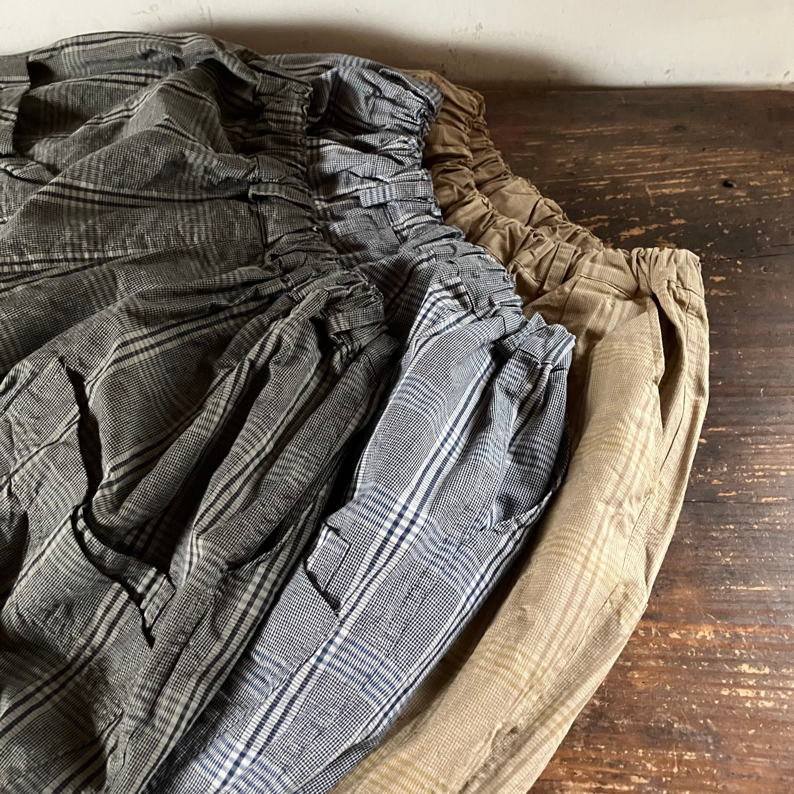 コクーンパンツ ショート コットンリネングレンチェック Sa-Rah