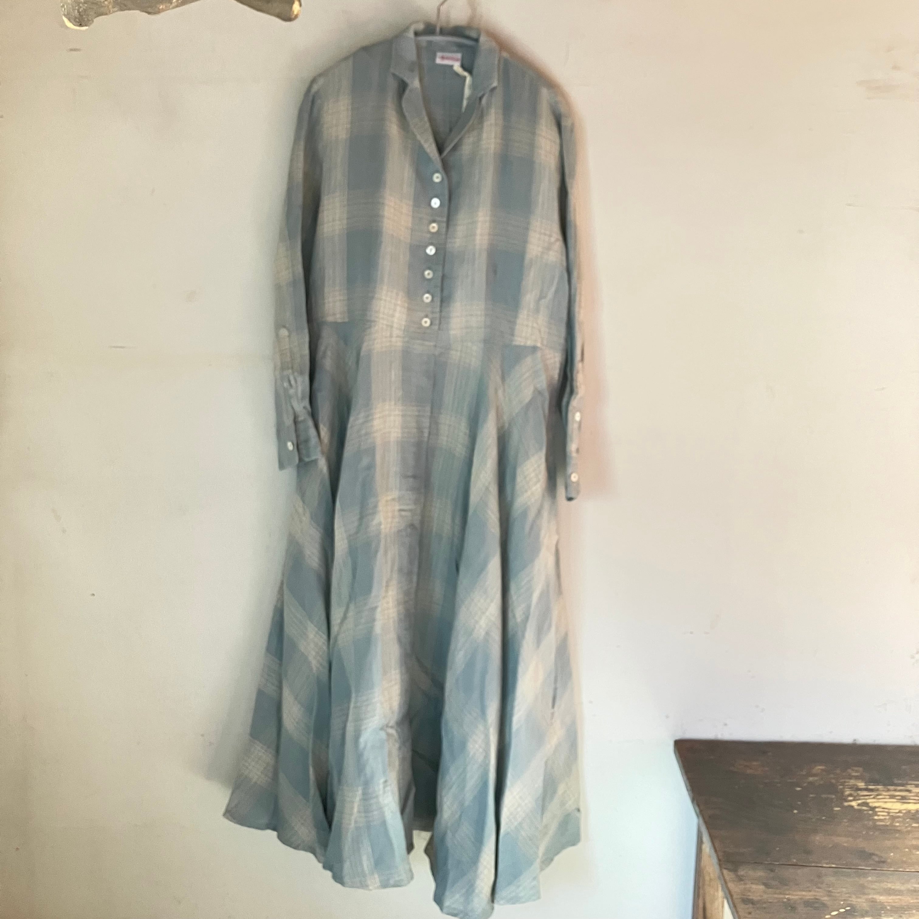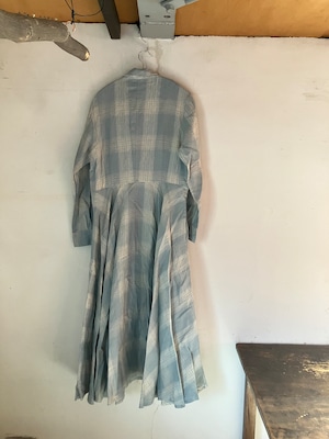 Sa-Rah 1dayフレアワンピース長袖 ブルーミストチェックリネン