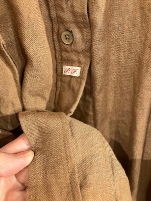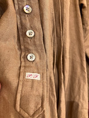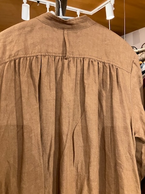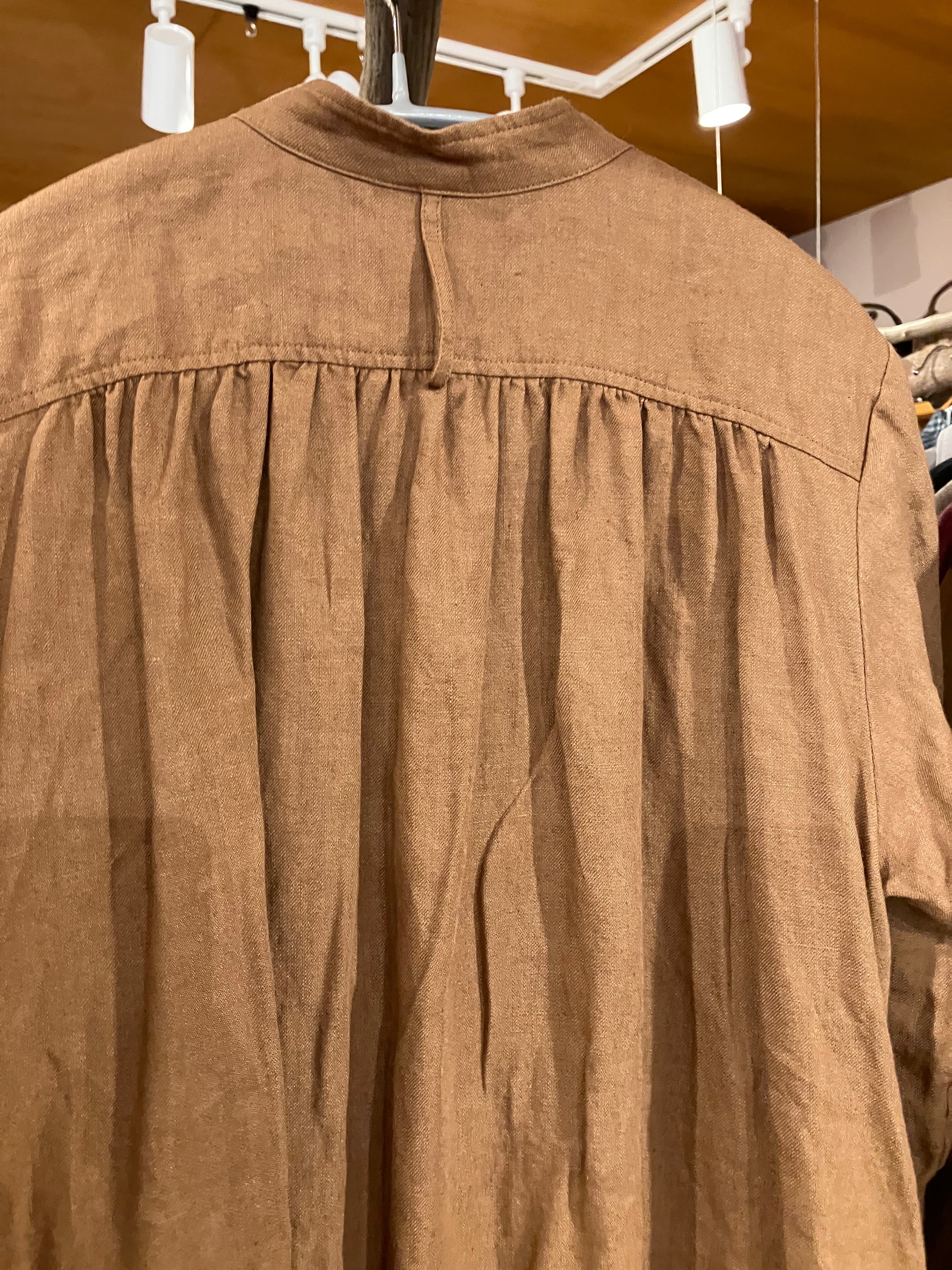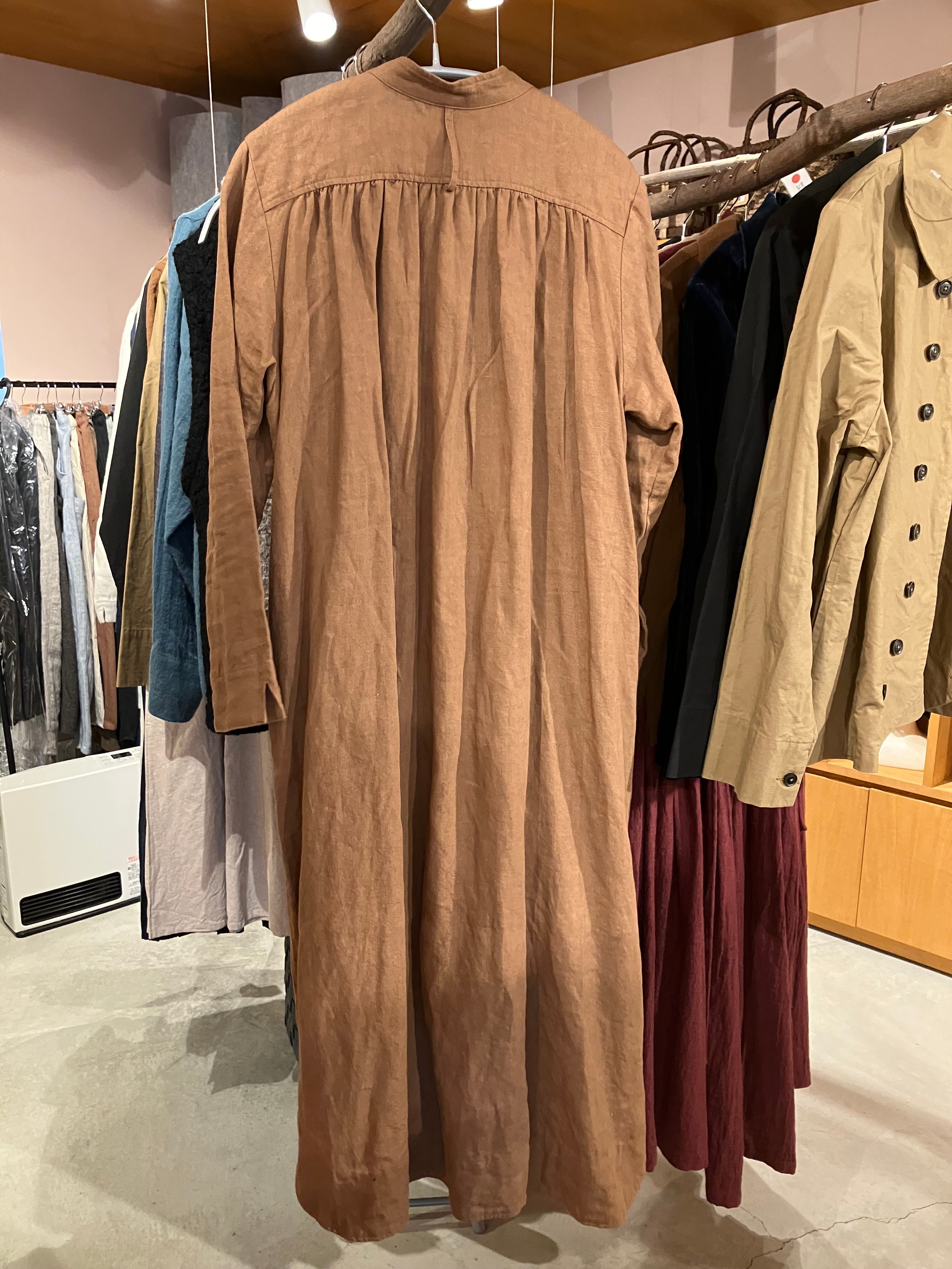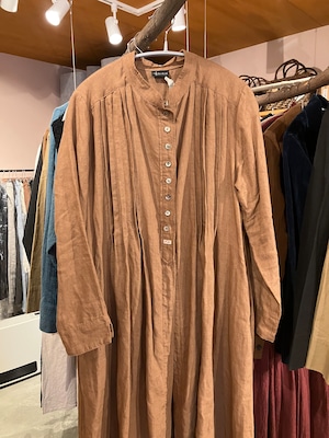 スタンドネックピンタックワンピース 長袖 柿渋リネンブラウン Sa-Rah