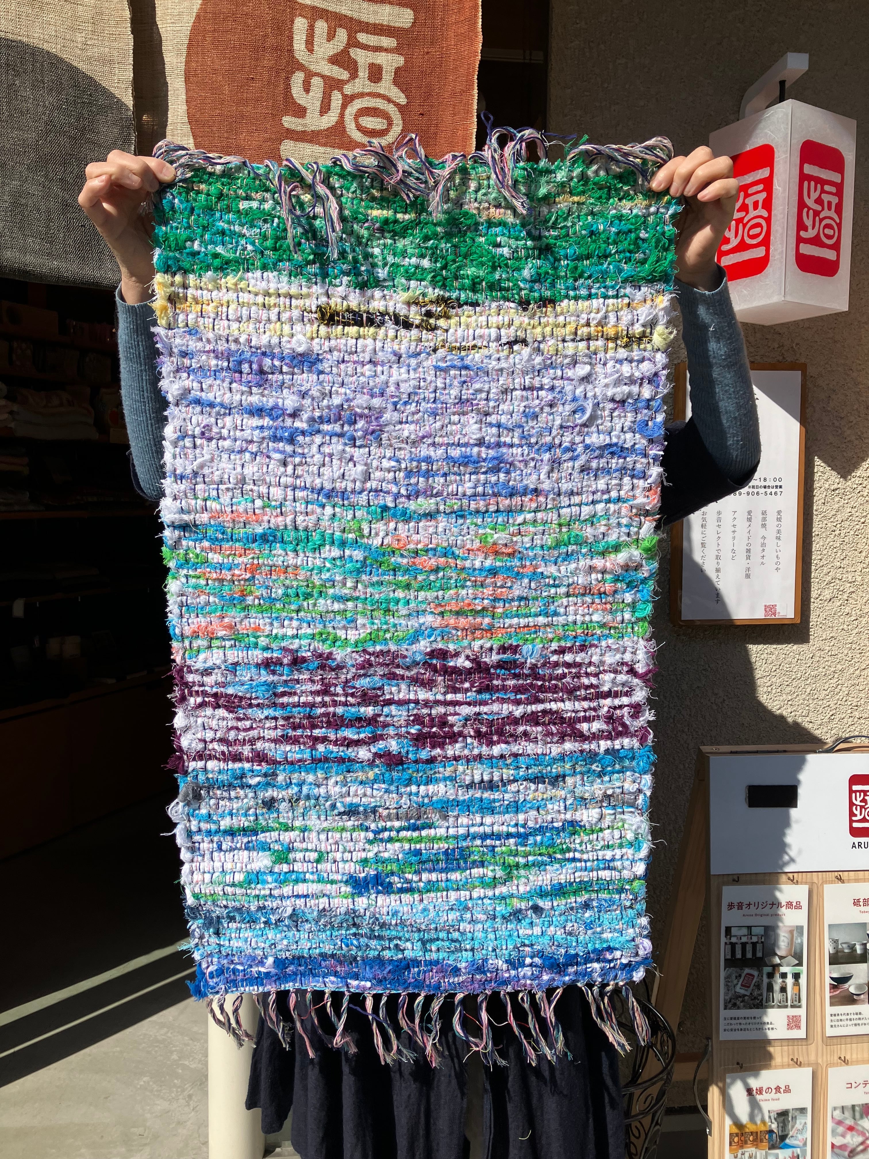今治タオルからできた裂織りマットです。