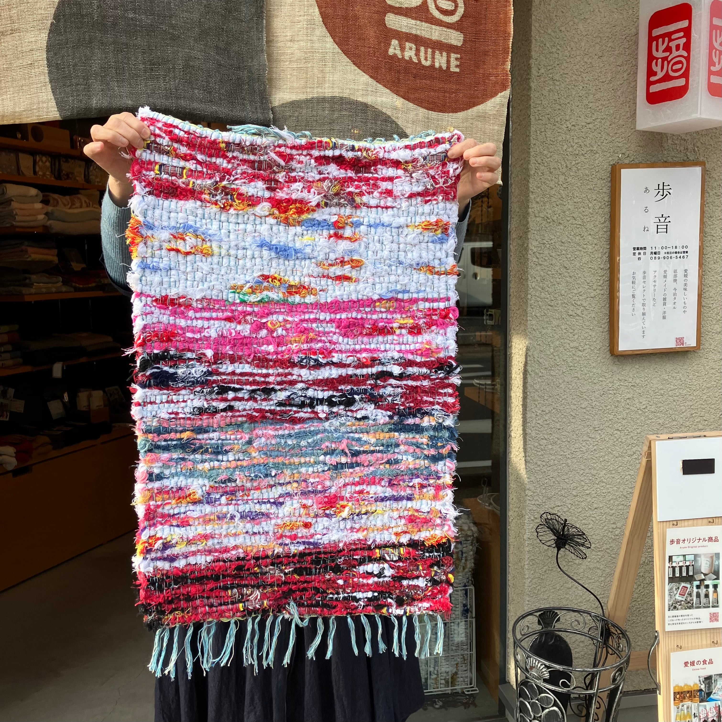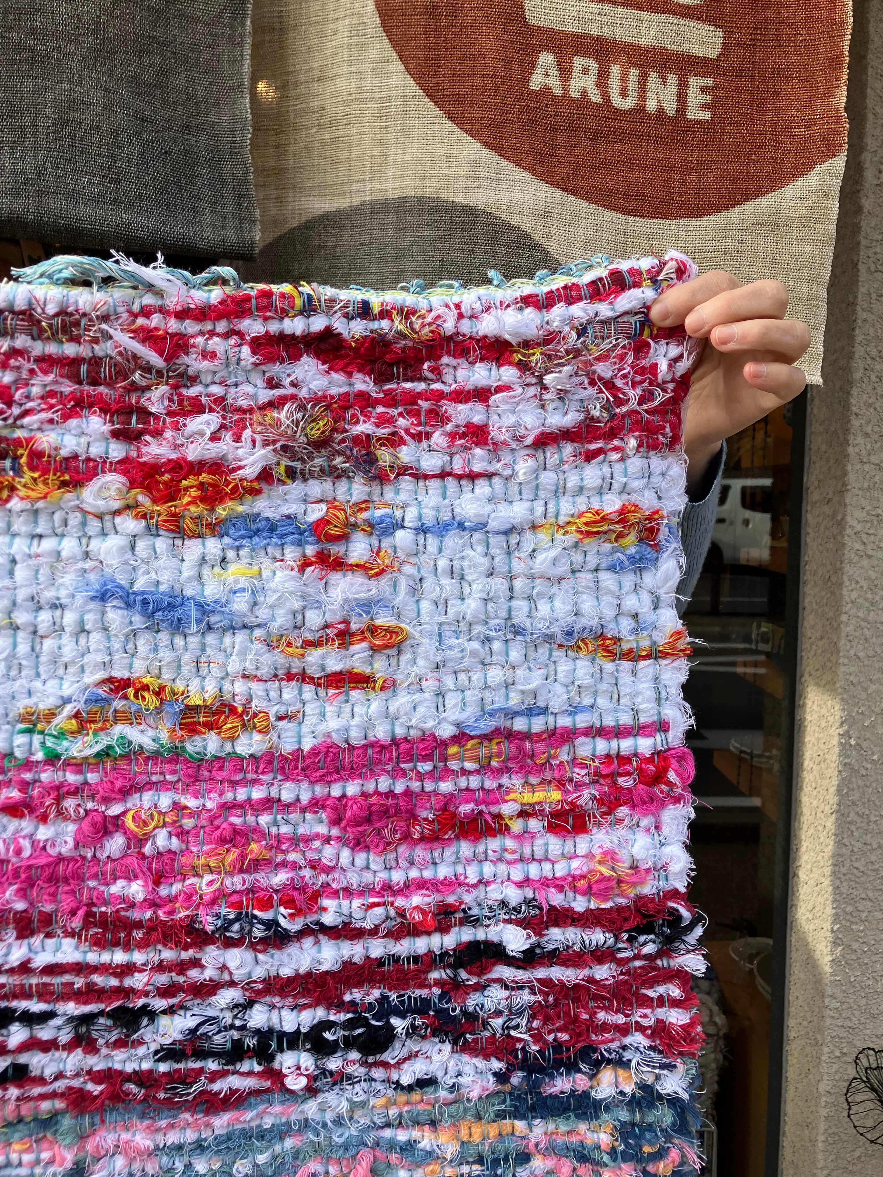 今治タオルからできた裂織りマットです。