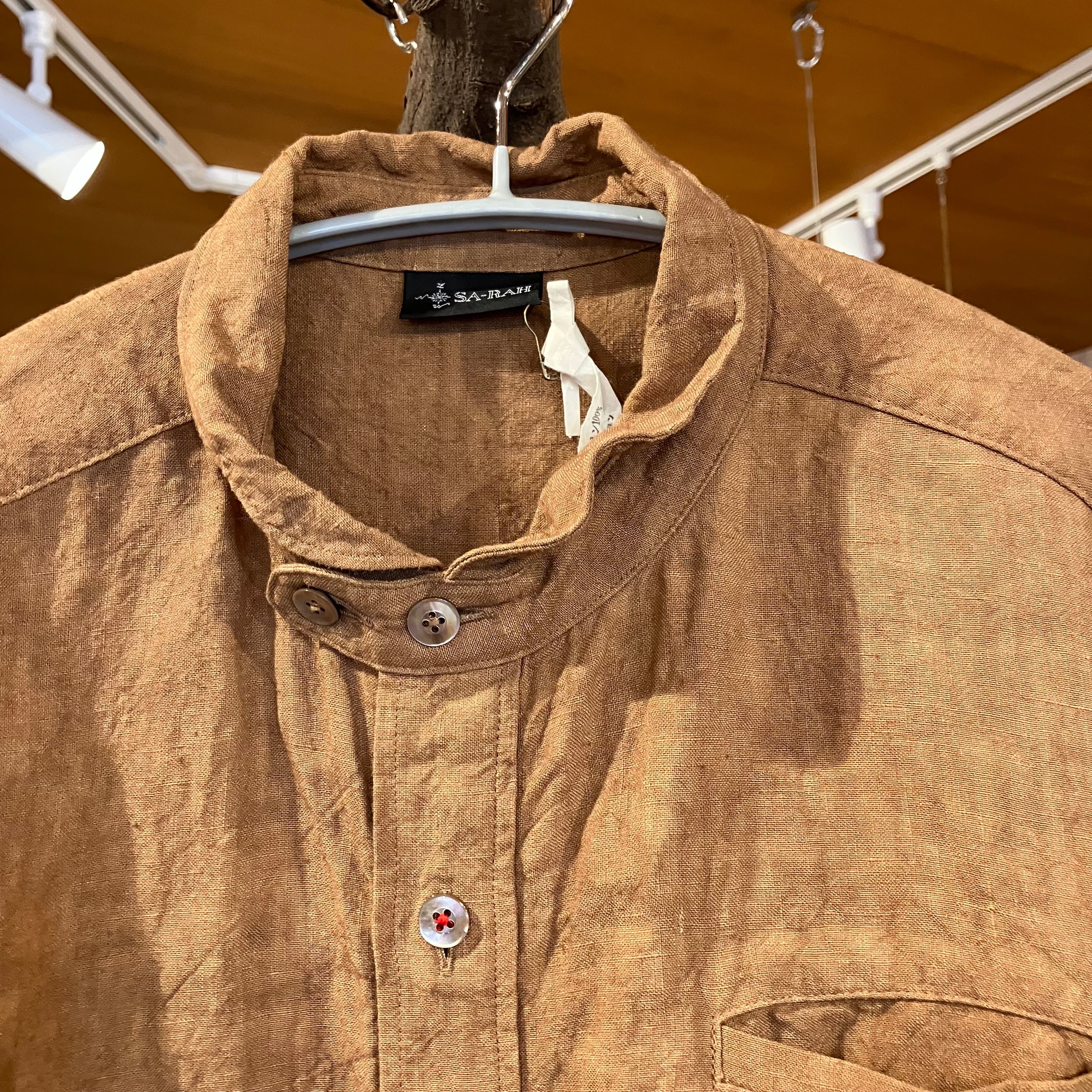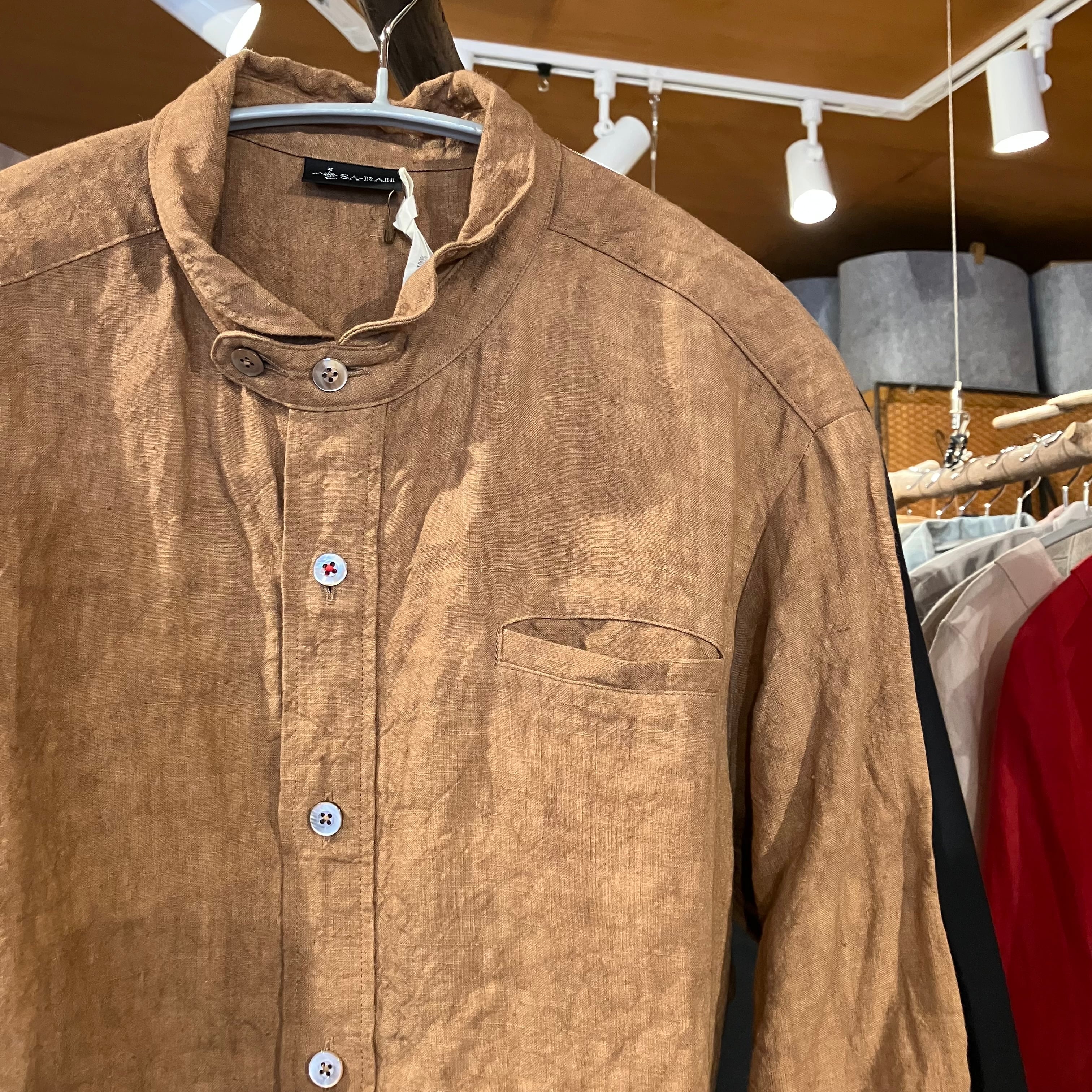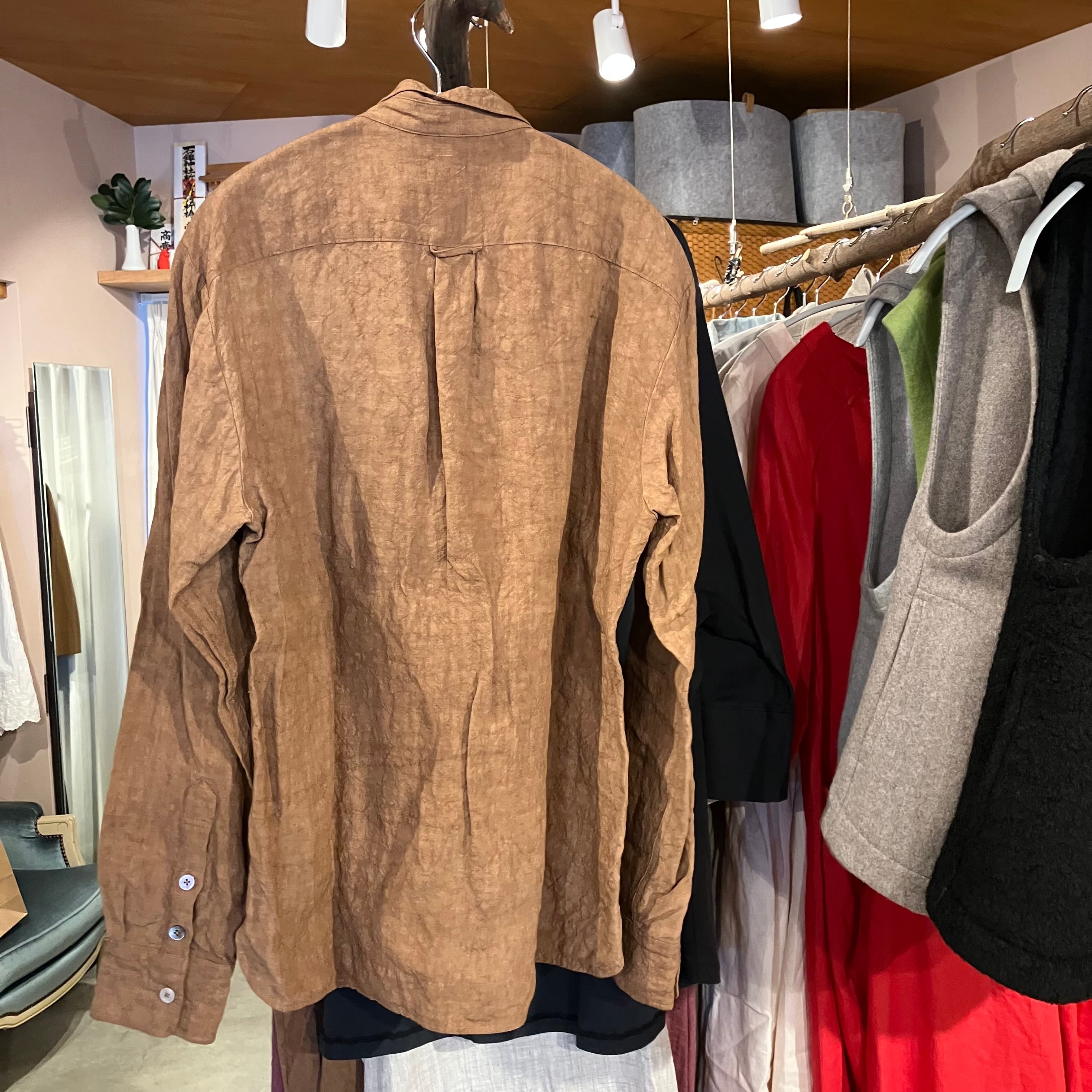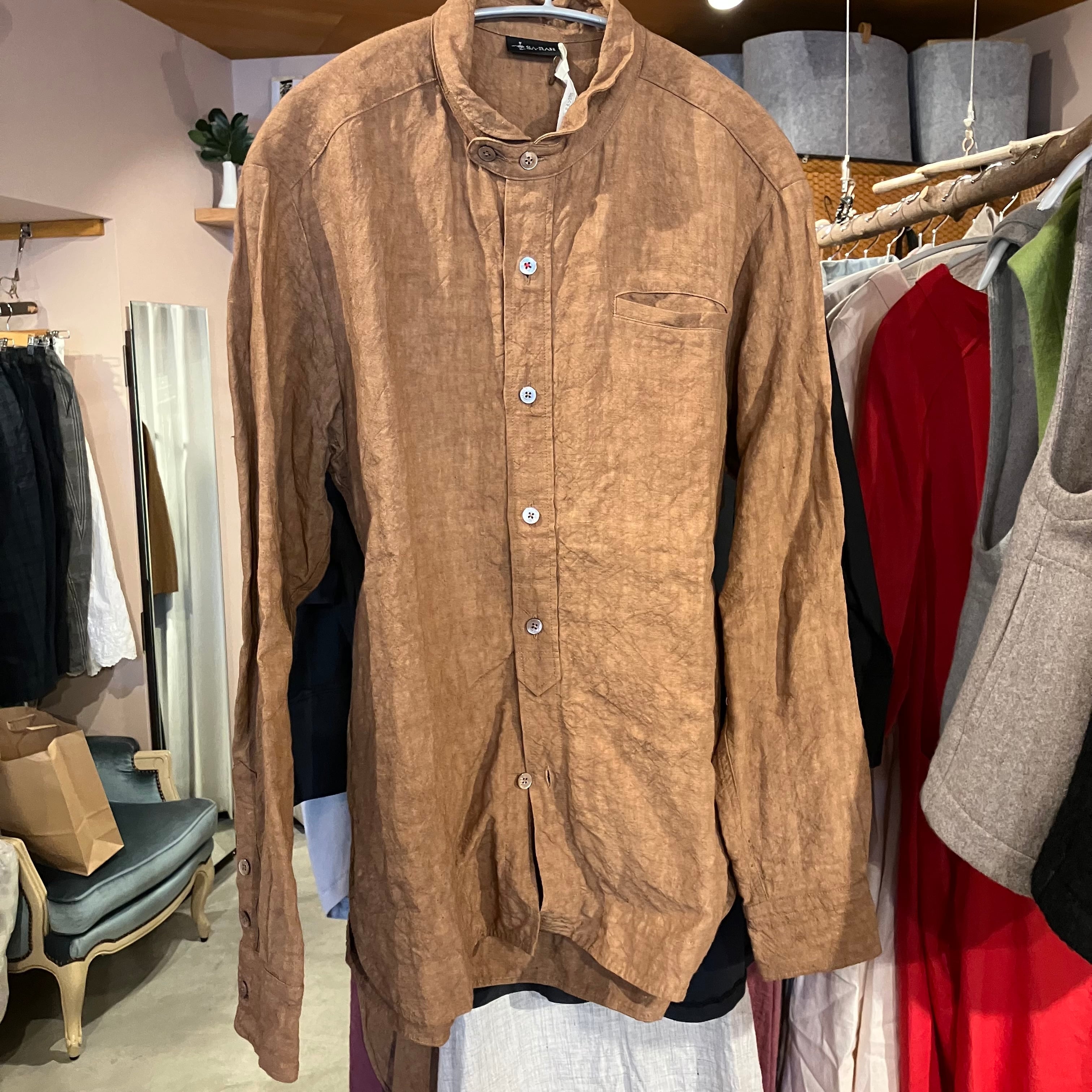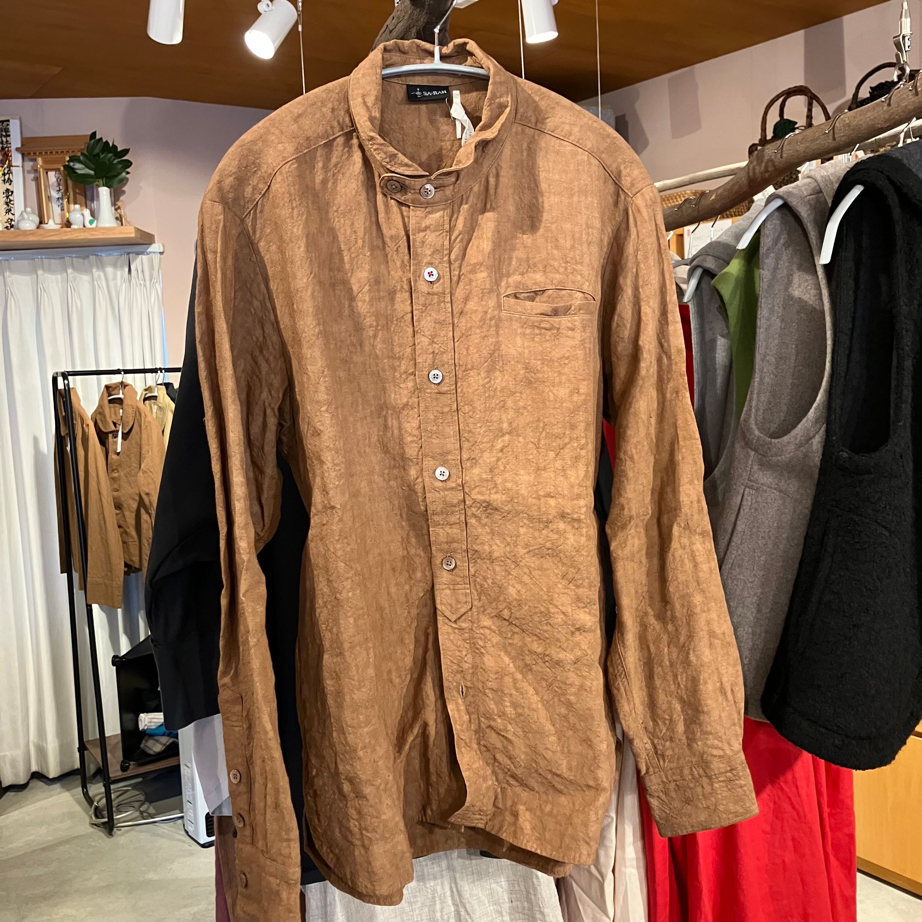 チビ襟スタンダードシャツ 男女兼用 柿渋リネン Sa-Rah