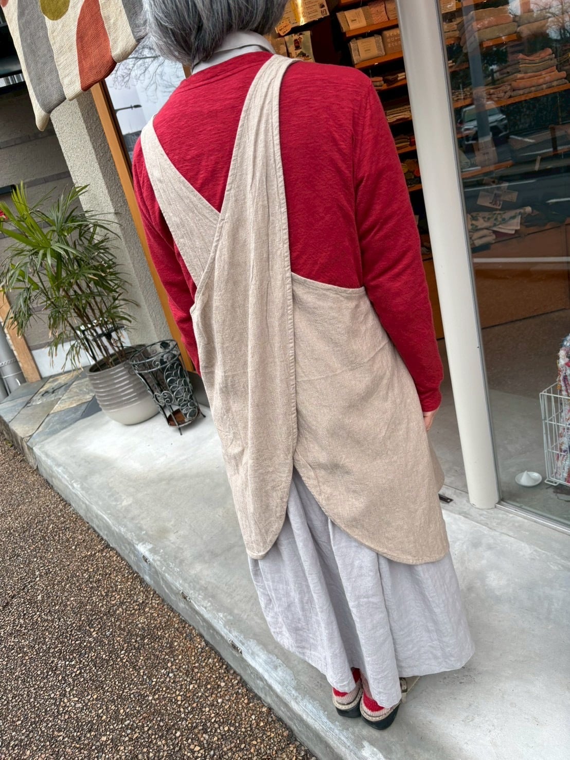 バッククロスプルオーバー ラウンドネックショート リネンナチュラル エプロン