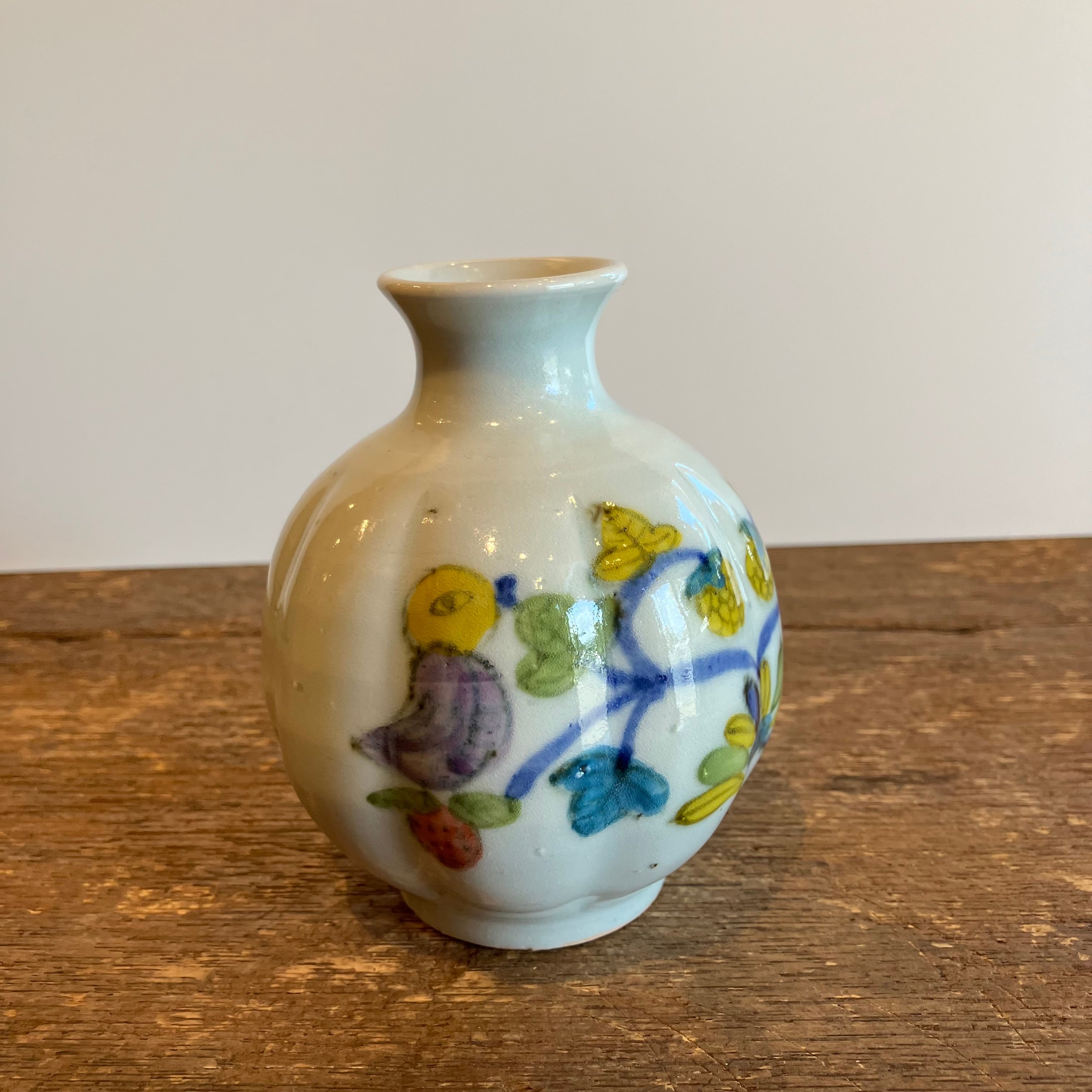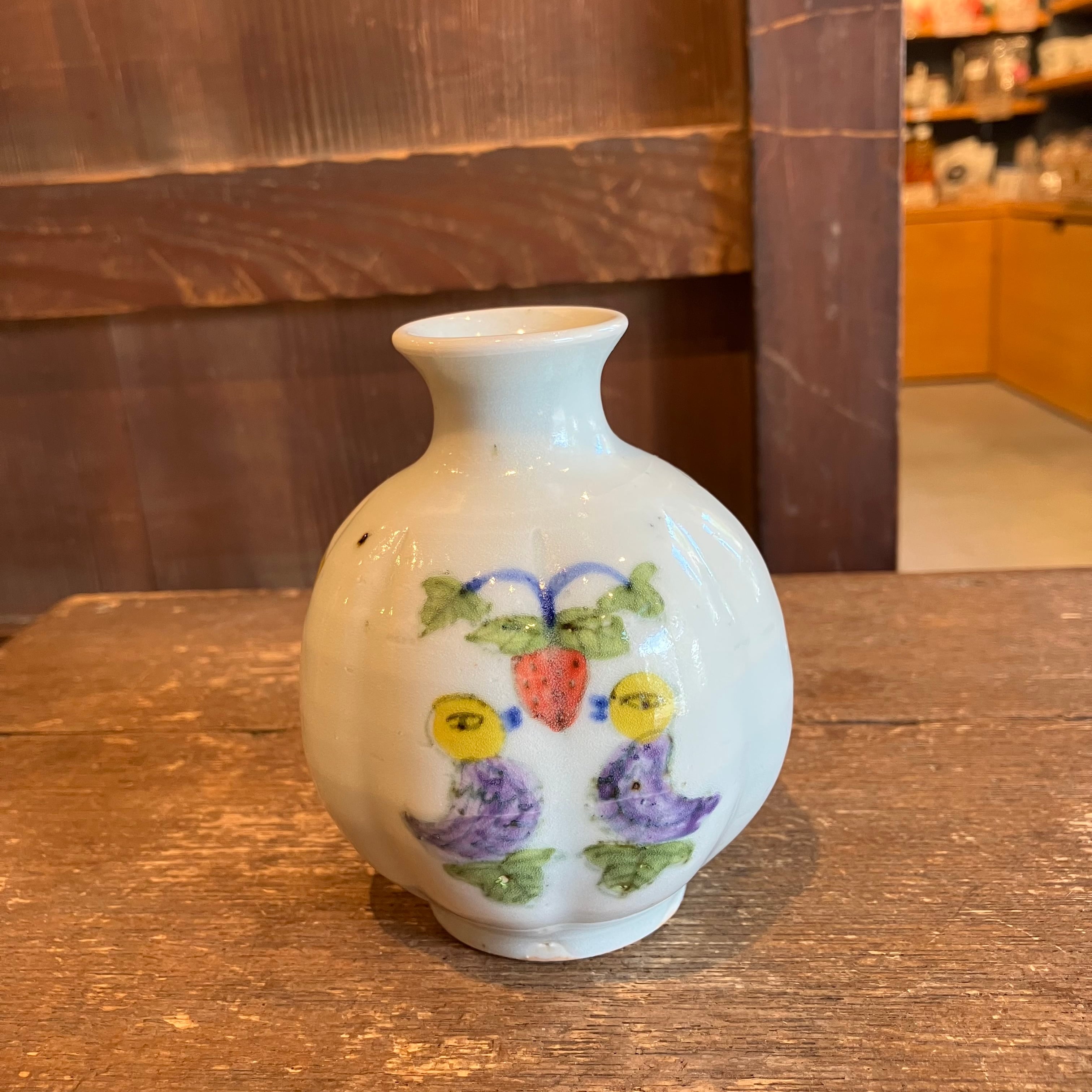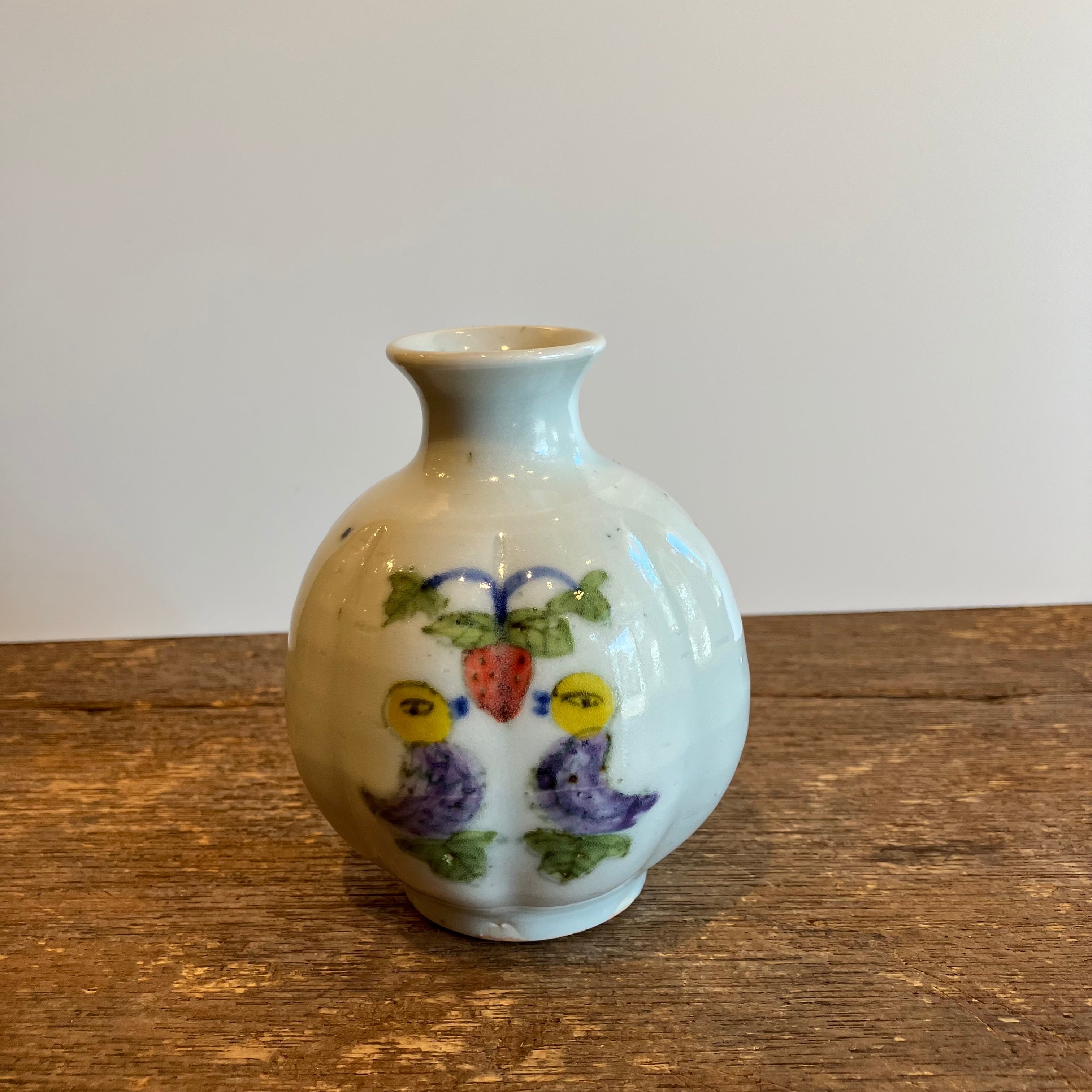 皐月窯 荒土 花瓶 鳥いちご 砥部焼