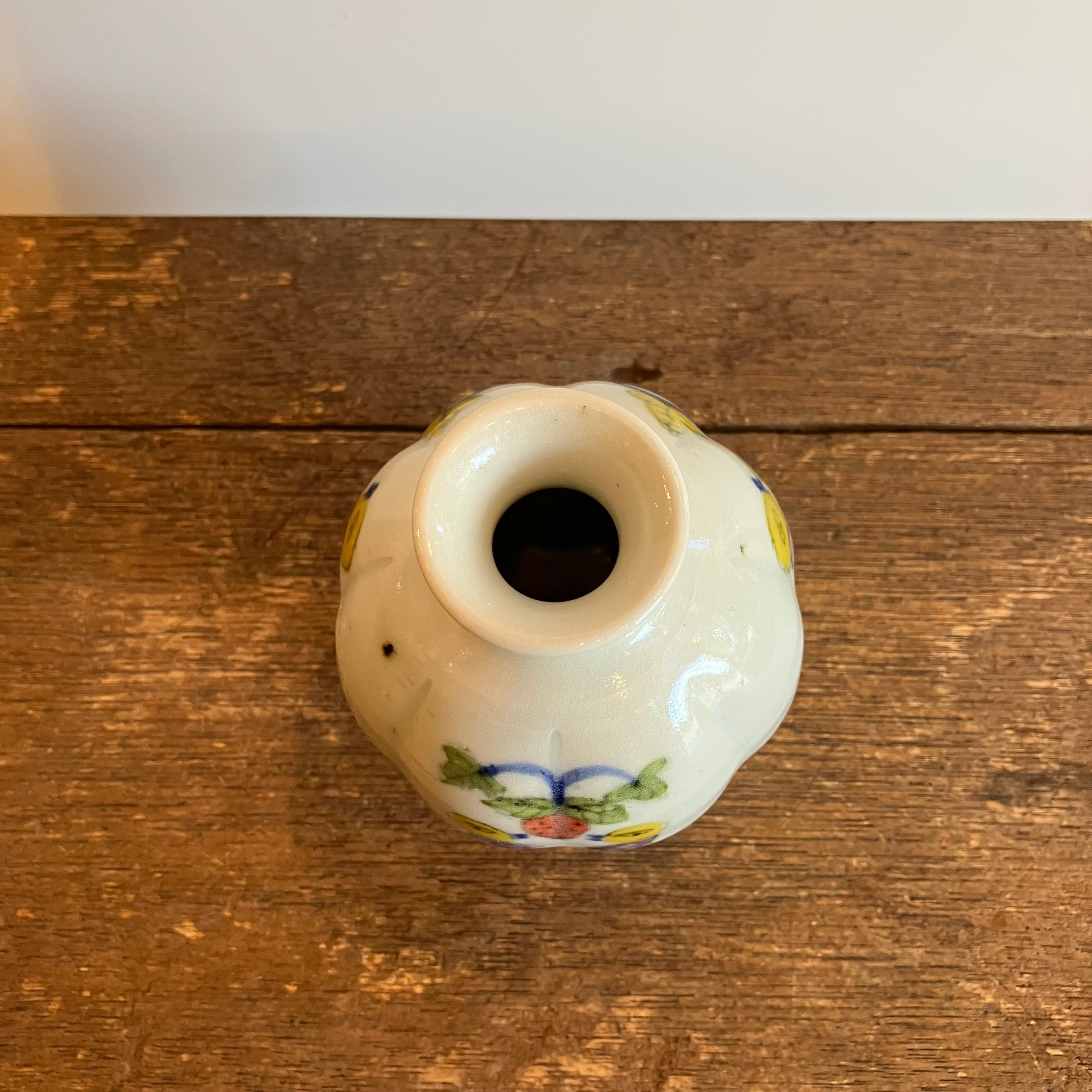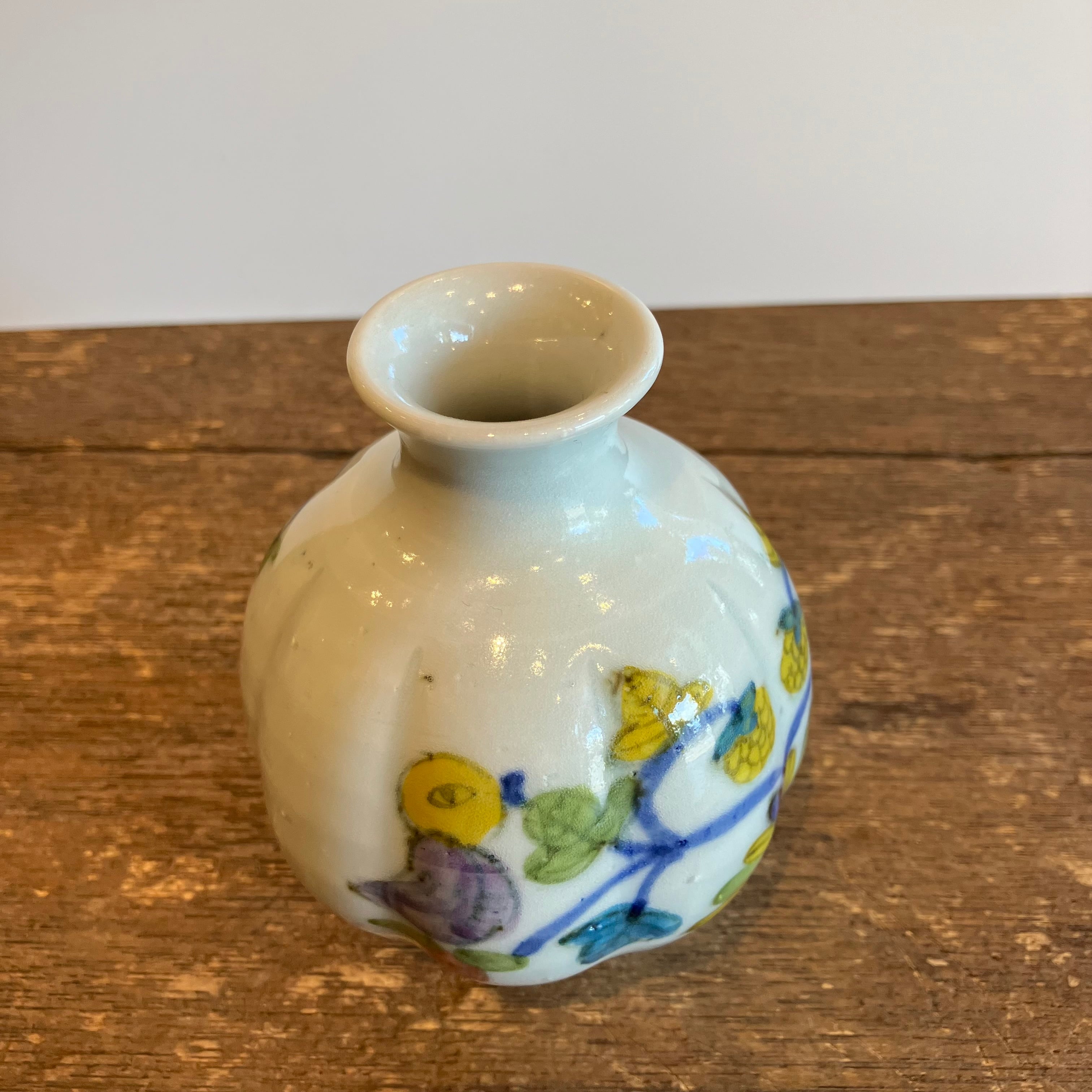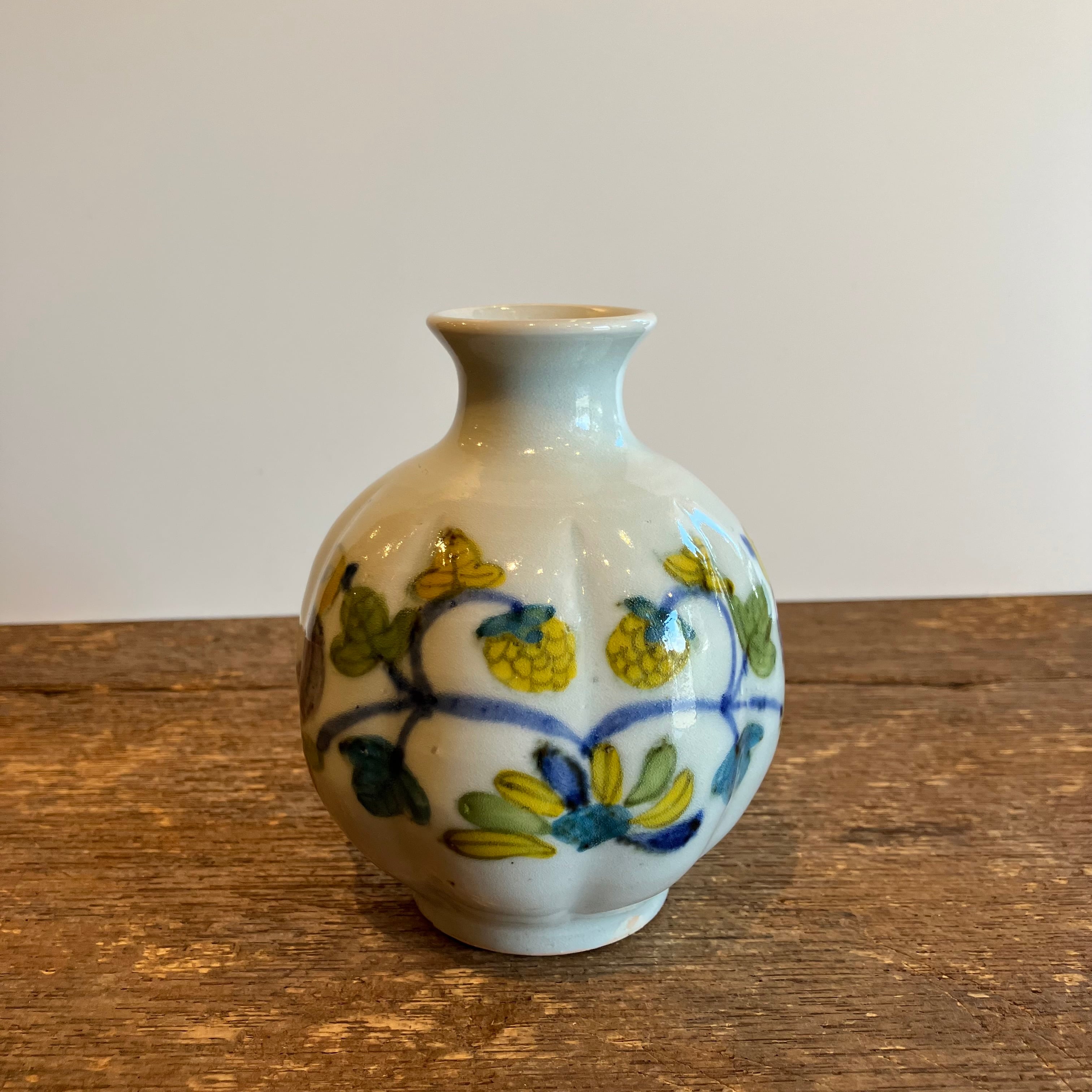 皐月窯 荒土 花瓶 鳥いちご 砥部焼