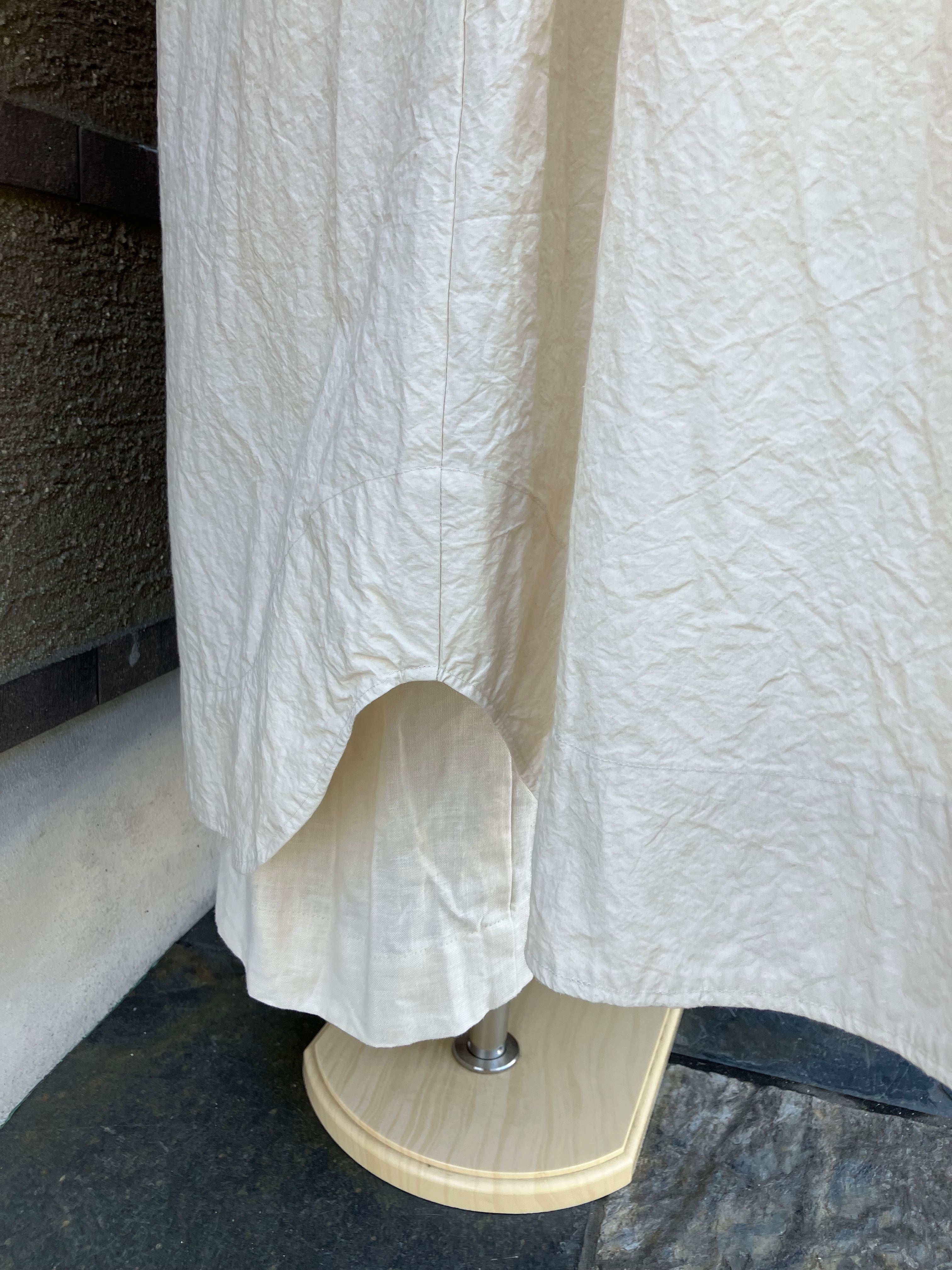 スタンドネックピンタックワンピース 長袖 コットンリネン タイプライターワッシャーエクリュ Sa-Rah