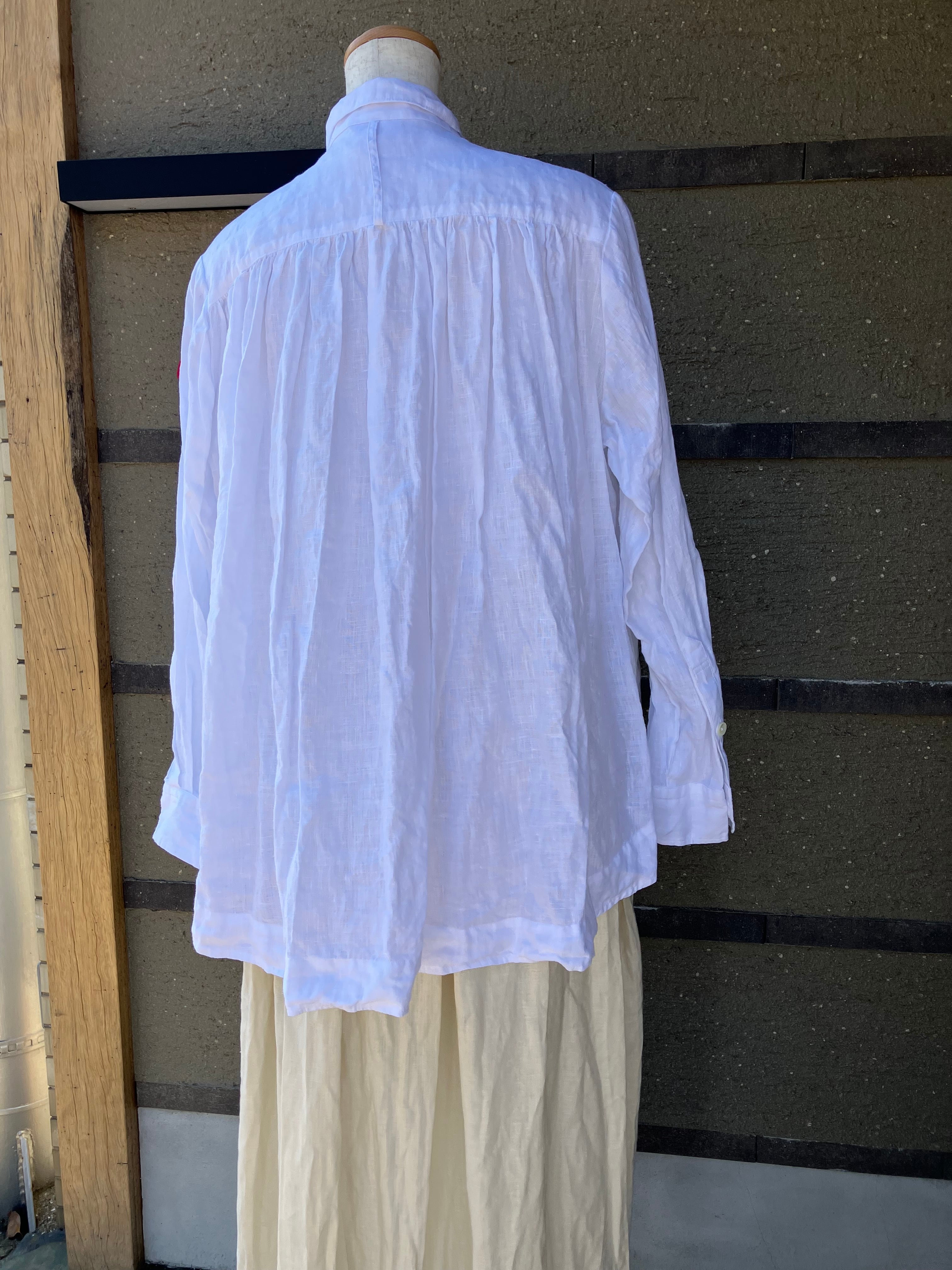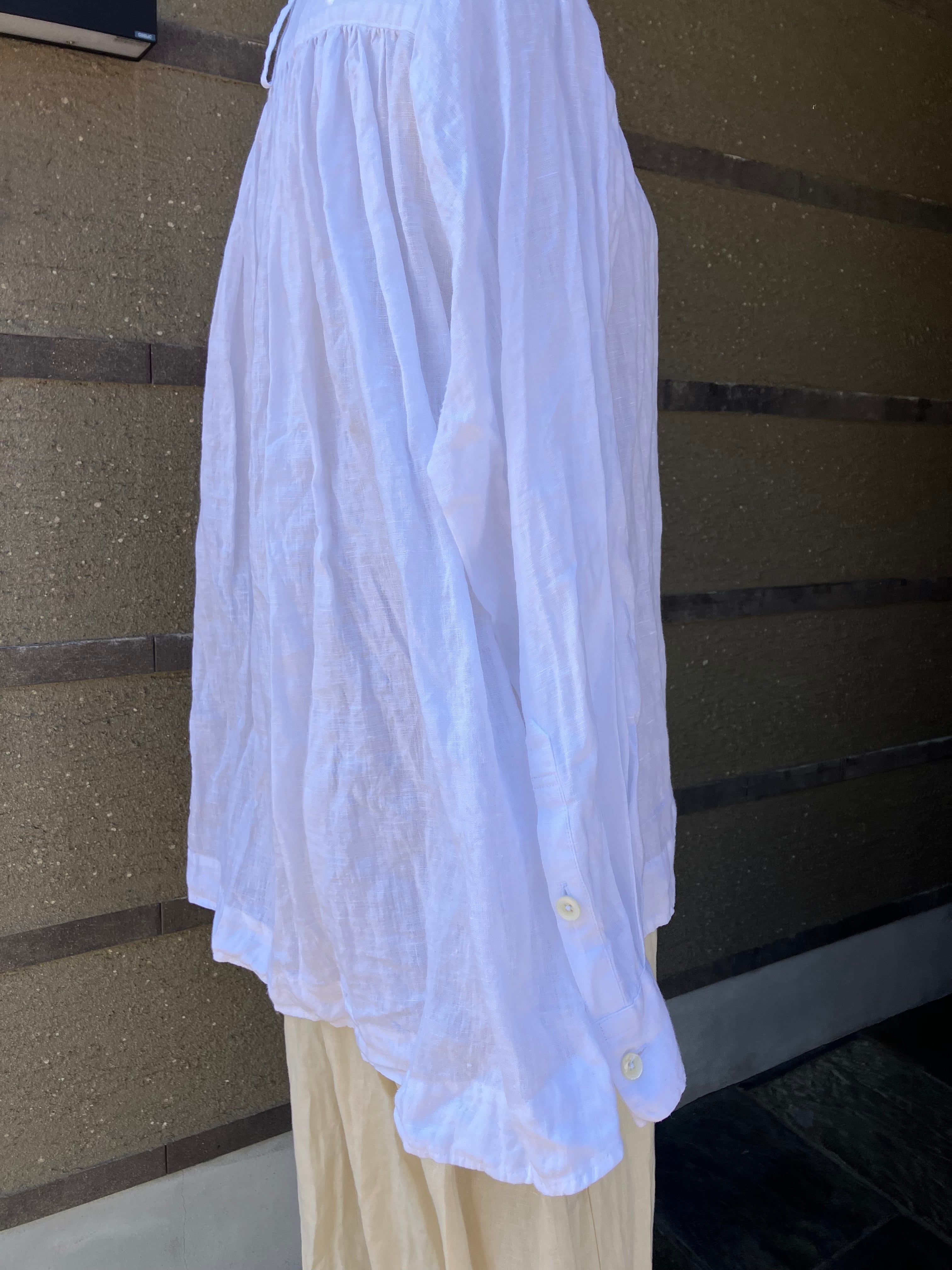 チビ衿ギャザーシャツ長袖 リネンピュアホワイト