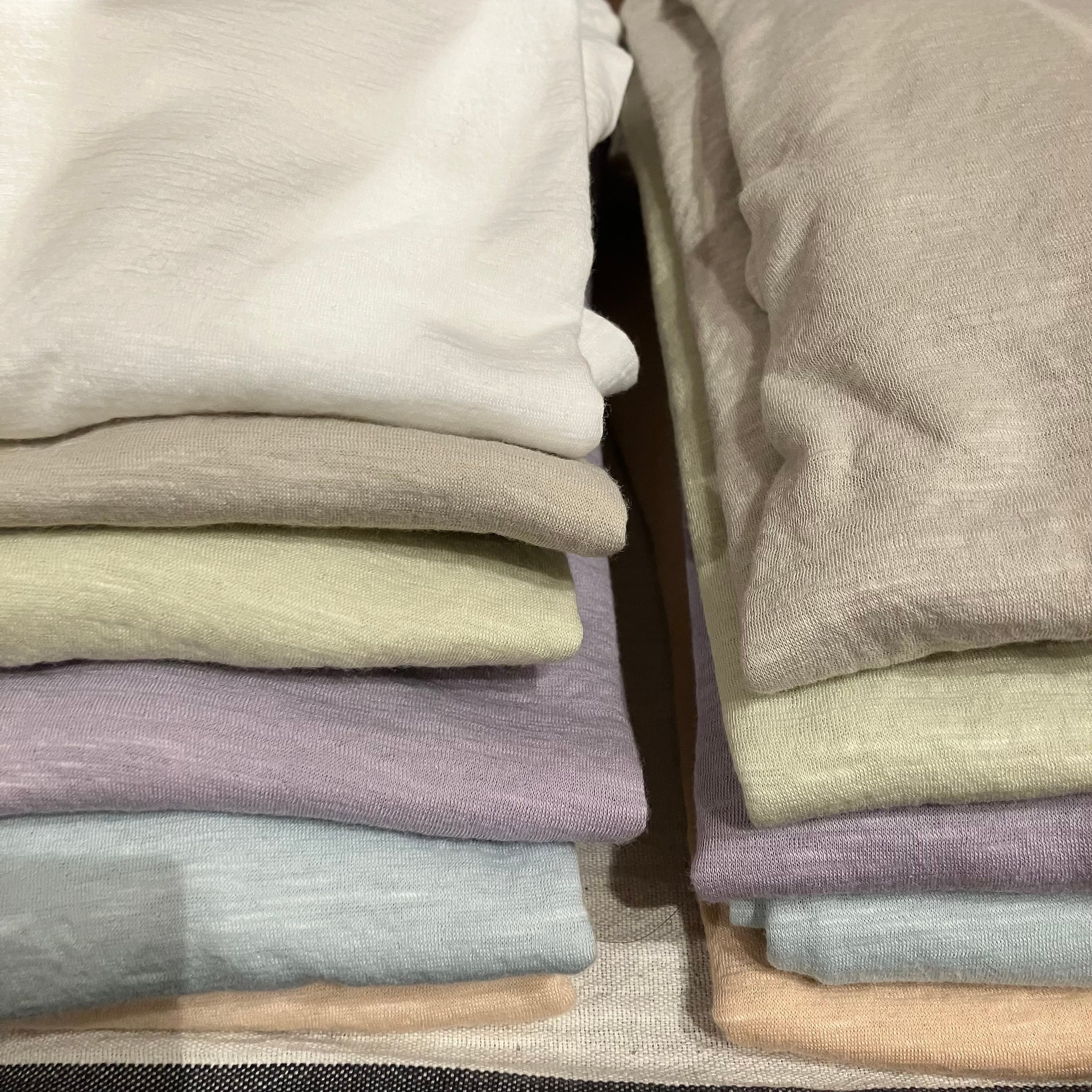 細い糸で編んだ二重の天竺ガーゼ(なめらか天竺)を使用した8分袖Tシャツ。